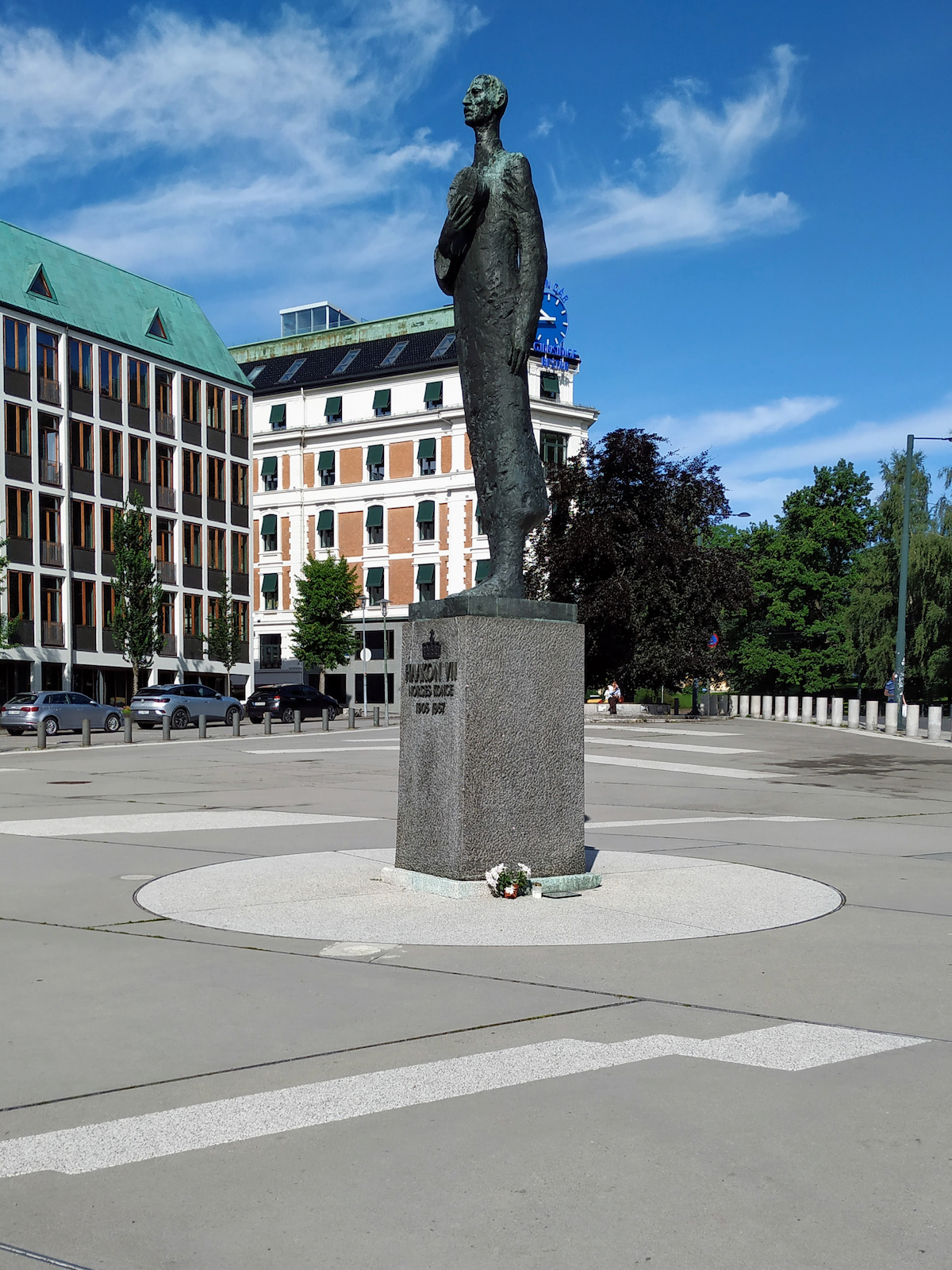 Haakon VII-statyn på 7. juni-plassen